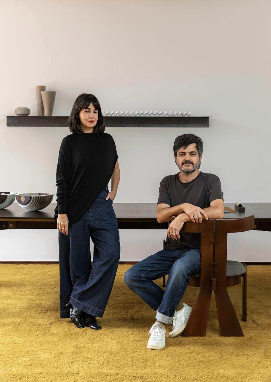 ALVA DESIGN is a Brazilian furniture and object design studio founded in 2012 by siblings Marcelo Alvarenga and Susana Bastos, whose multidisciplinary backgrounds in architecture, fine arts, and fashion converge in a distinctly poetic approach to contemporary design. Rooted in their early exposure to craft and artistry in Minas Gerais, the duo’s work bridges structure and fluidity, functionality and emotion. Marcelo’s architectural precision and Susana’s artistic sensibility result in creations that feel both grounded and expressive. Since debuting at MADE – Mercado, Arte, Design in 2013, ALVA has become a defining presence in Brazil’s design scene, collaborating with heritage institutions such as ETEL and earning recognition from Casa Vogue Design Awards and Elle Deco Brasil Design Awards. Beyond furniture, their creative vision extends to costume design, notably for Grupo Corpo’s 50th-anniversary ballet Piracema. In 2025, they opened Galeria ALVA, a permanent space showcasing their universe of furniture, art, and objects. Each piece embodies ALVA’s commitment to timeless materiality, intimacy, and atmosphere—celebrating the poetry of living.