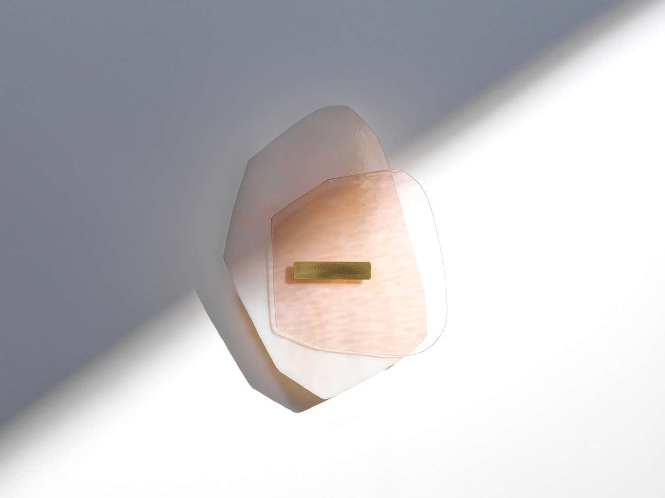 These luminous sculptures evolve with the rhythm of the passing of time, their locations and lifestyles of their owners. Moving reflections with variable ripples, their hypnotic caustics and ephemeral lights are nuanced according to the natural light they receive. The evening, they metamorphose and immerse us in a sweet atmosphere warm and warm. Inspired by the world of jewelry and entirely handcrafted, – Les Precieux – are made from cast, hammered glass sheets or blown. The structure and finishes are brushed brass, a touch of gold who has just finished dedicating these unique pieces. Composed of different layers put into volume, these light sculptures seem to float on the walls they inhabit. A delicate balance that combines the organic and the angular, the translucent and the opaque, the smooth and the textured, the polished and broken, a lightweight structure and an assertive design. Its first collection features 5 flagship models: Symbiose Resilience Alliance Unity Pill
