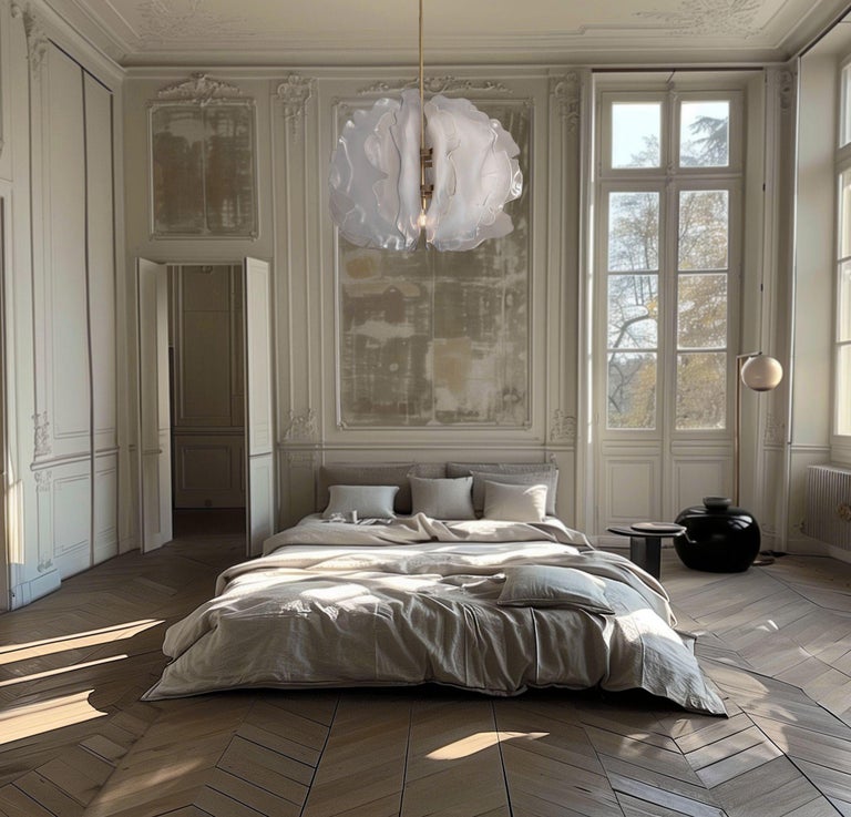 Unique Bloom Chandelier with Light White Glass Petals by Marie Jeunet