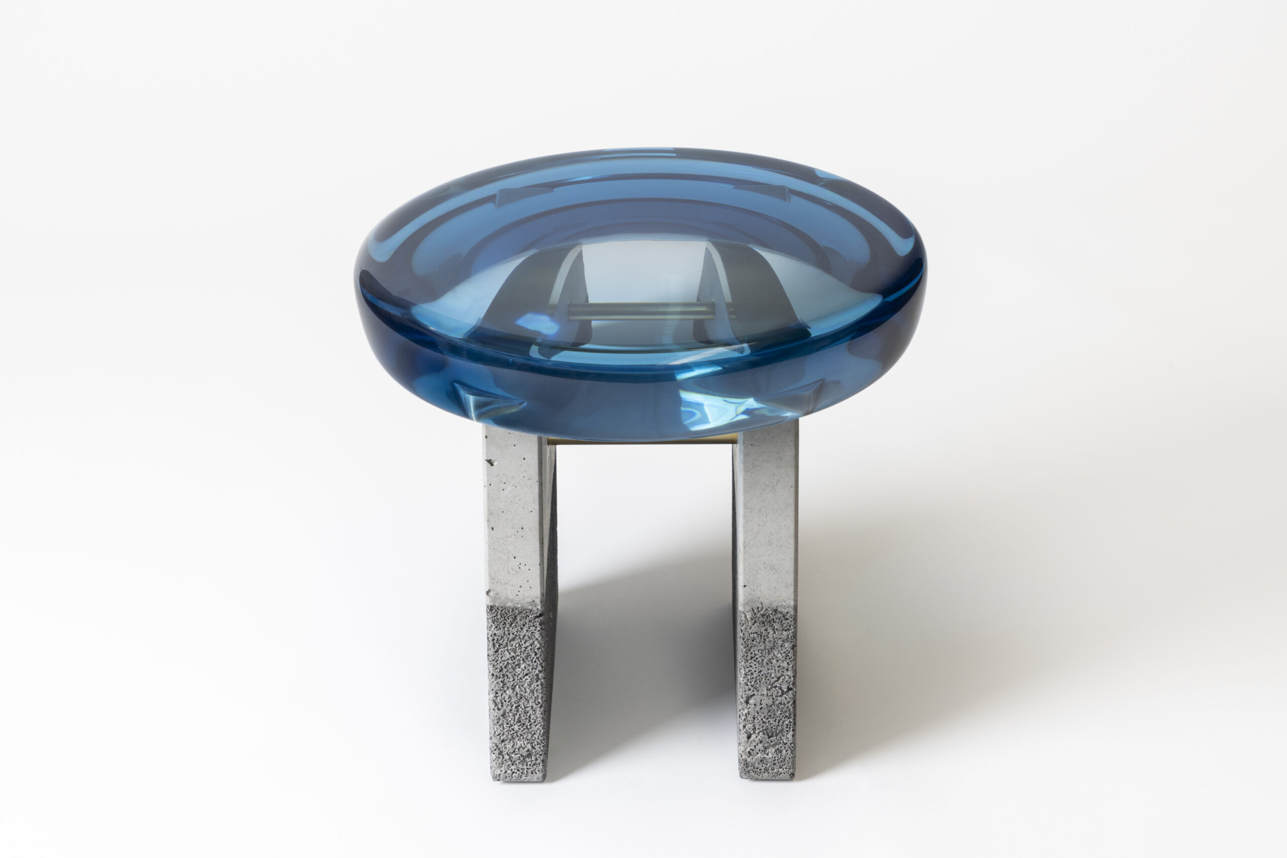 Formed from a combination of reflective resin and solid brass, the Jade coffee tables look like precious gems. The surface is made by hand in resin of 10 cm high: each one takes over a week to cast. Thanks to a handcrafted surface treatment, special brass veins characterize the structure of the coffee tables. Inspired by the magical mineral color palette of Transparency matters, these coffee tables are featured by ethereal transparency, luxurious sensitivity, and a reflective surface that plays poetically with the light, reflecting your gaze as a functional work of art.