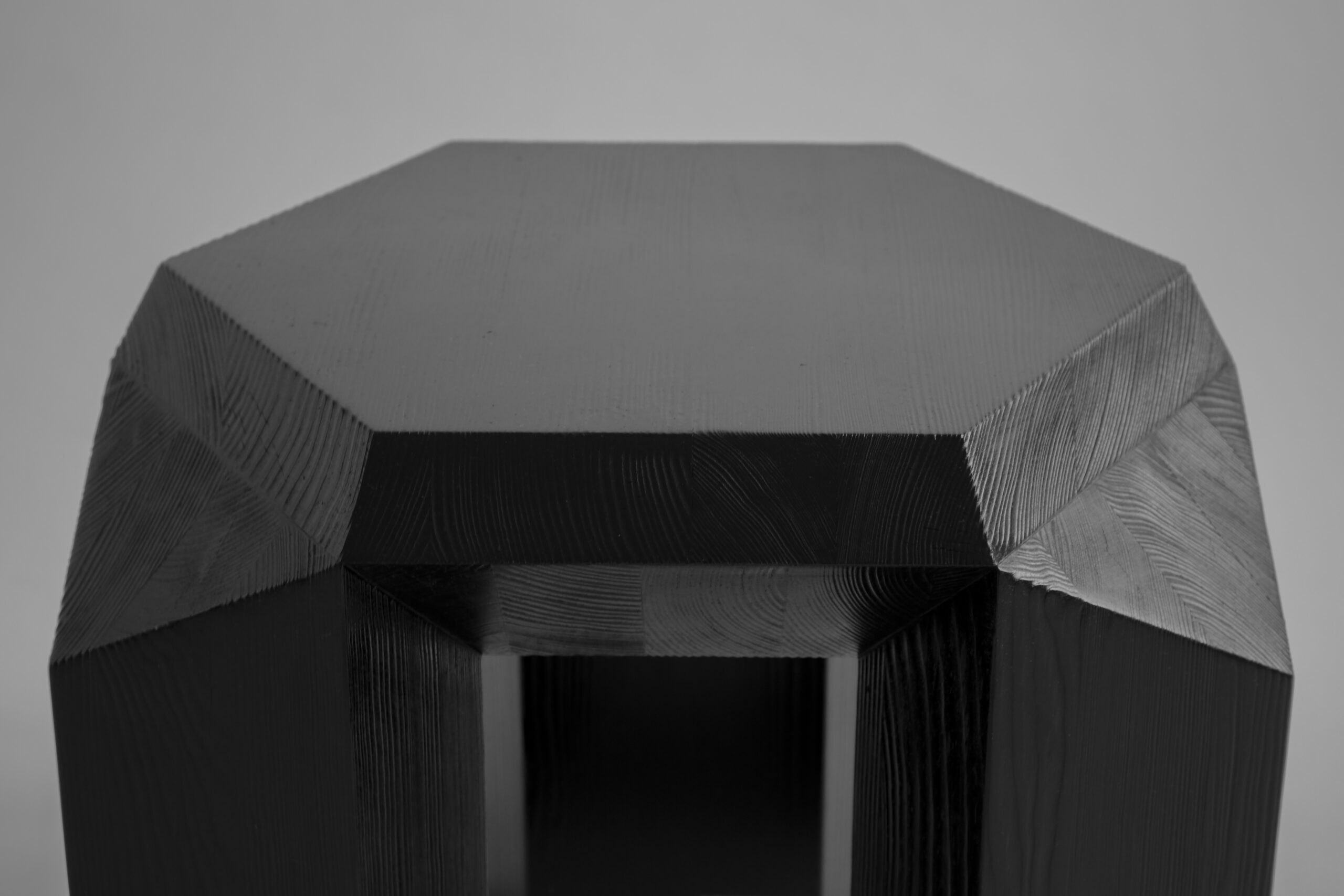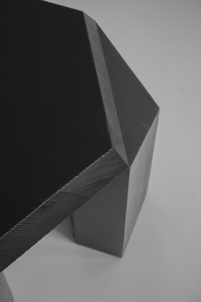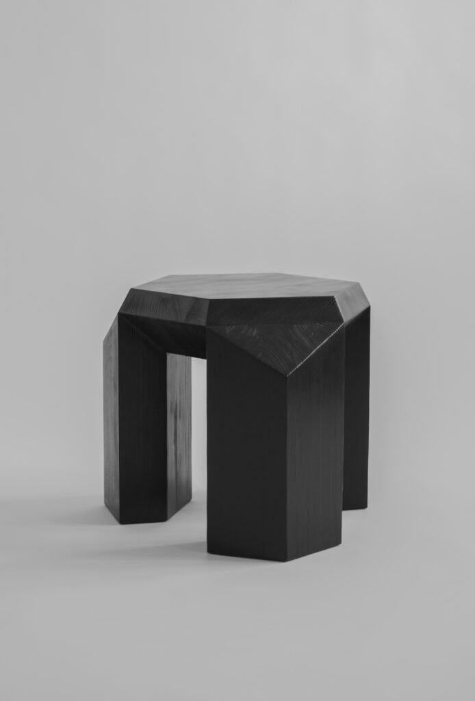 The hexagon has more to it than we think, and some of the aspects of this shape are still mysterious. The series is an ode to the aesthetics that I fell in love with within a geometrical sculptural work of art and the interesting perfect form of the historical hexagon. It’s fascinating how hexagons are part of our life but fail to realize this. It all comes down to the element that is present throughout our body, and that is carbon. The use of the form dates back to ancient Mesopotamia circa 690 BC in the form of hexagonal-shaped cuneiform of the Assyrian king Sennacherib´s annals and is one of the first humans found to utilize hexagonal shapes. The series comes in natural solid pine or burned pine that gives it its character and tactility in the visible wavy woodgrains.