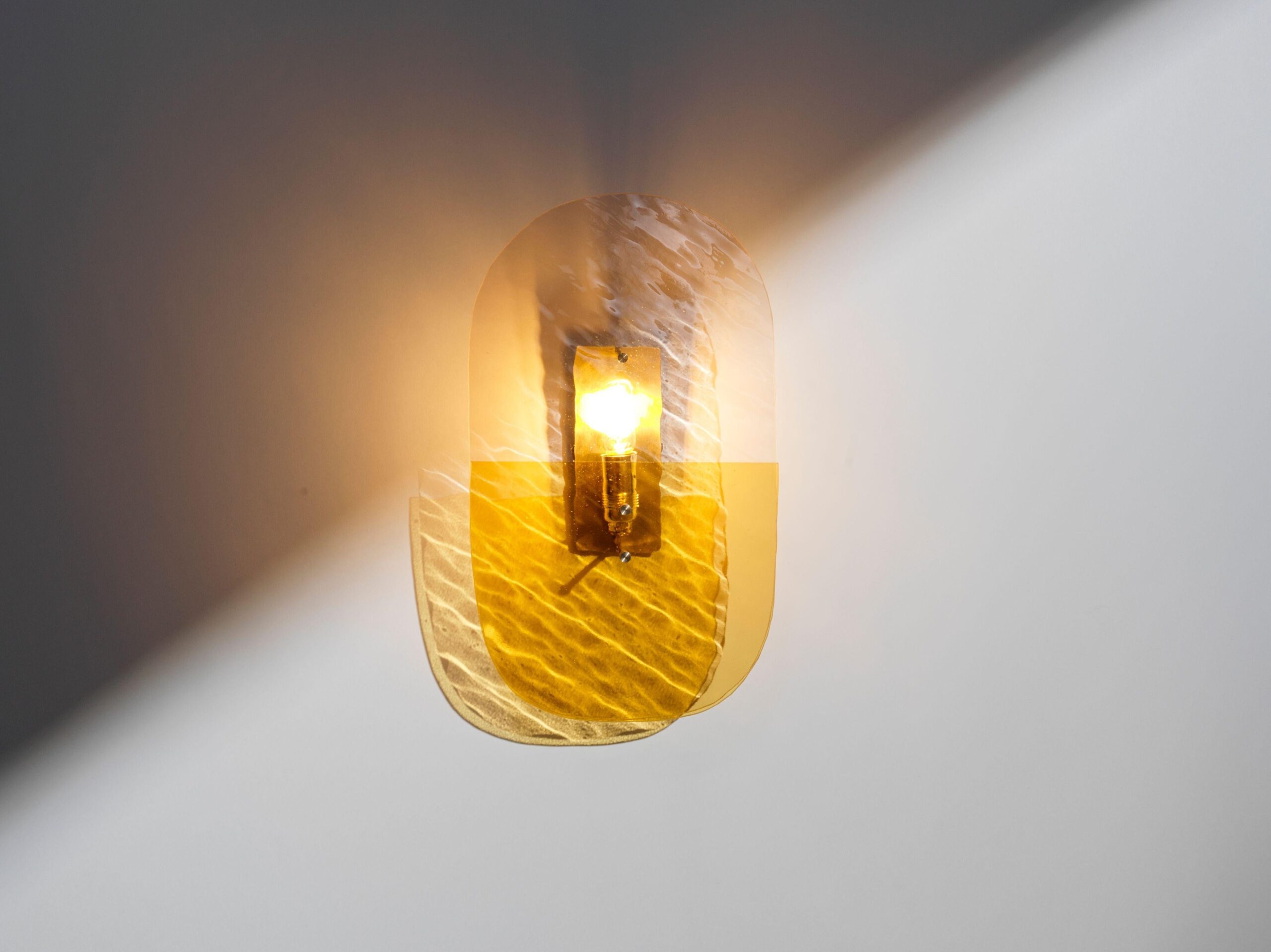 Composed of different layers put into volume, these light sculptures seem to float on the walls they inhabit. A delicate balance that combines the organic and the angular, the translucent and the opaque, the smooth and the textured, the polished and broken, a lightweight structure and an assertive design.