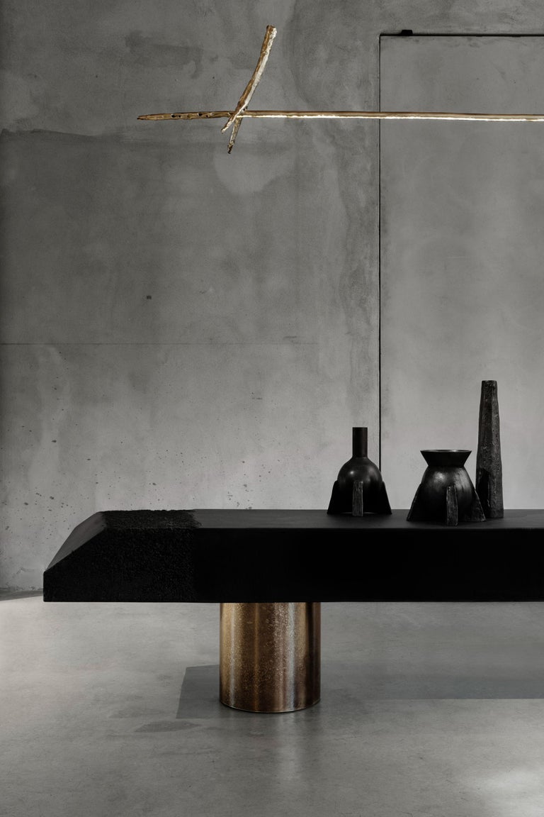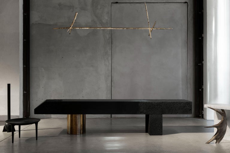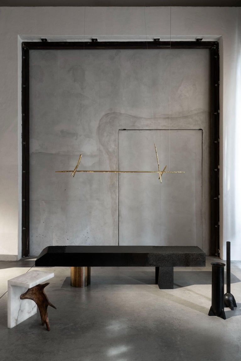 Prometeo is a Collection of objects arisen from the research on a return to the origins and the subsequent rediscovery of apparently lost resources. In our era filled with nebulous and liquefied references, which daily storm our (presumed) digital identities, Prometeo Collection goes over the myth of the gift of Fire by interfacing a melting and grinding technique with the composition of few, defined, allegorical elements. The sacrifice (from the Latin sacrificium, or “to make sacred”) of Prometeo is, therefore, the attempt to rediscover, through an intrinsically sustainable and good-progress process, a kind of meaning of self-awareness. Each piece is developed in relationship to the future context and through a shared and defined process for each element.
