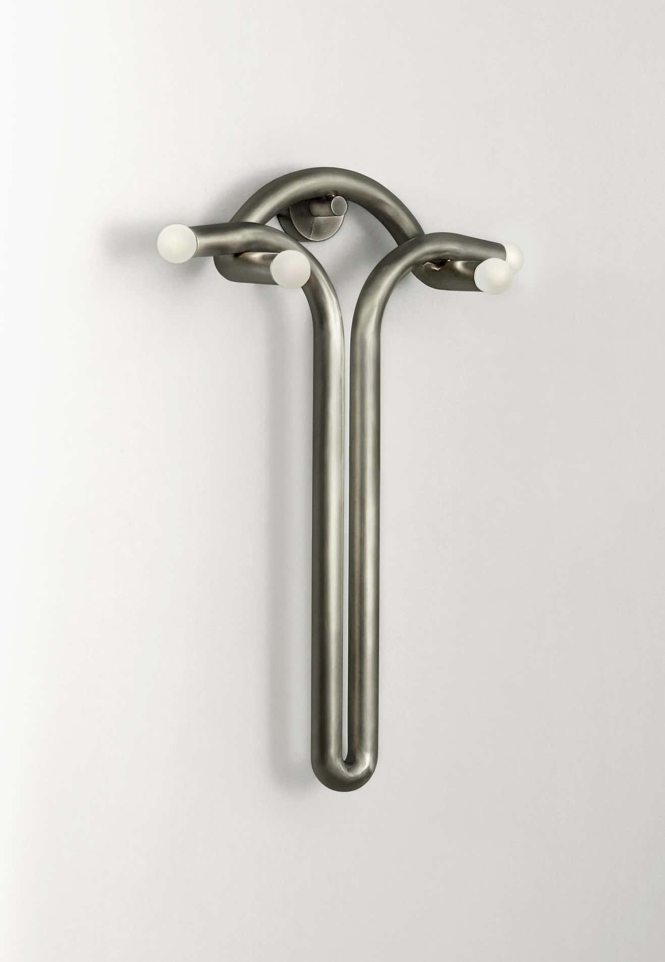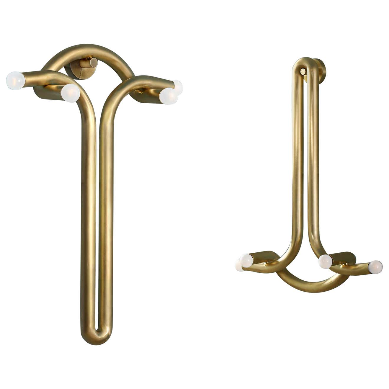The pair of Sconce explore the relationship between two interlocked forms in perfect union and balance. A study of form and function that evokes the grace and strength of the contributor where one form simply rests on the other, implying structural weight-bearing quality. The electricity seamlessly flows within.