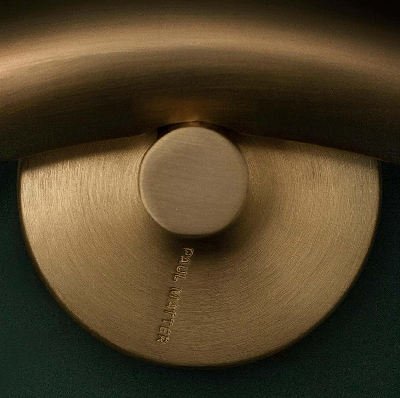 Available in finishes: burnt brass with burnt brass details, raw brass with raw brass details, aged brass with aged brass details, or tarnished silver on brass.