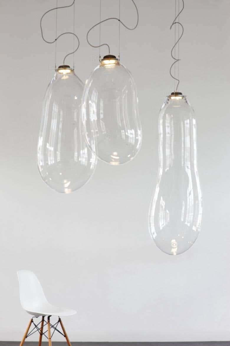 The big bubble has already become the icon in Alex de Witte’s oeuvre. These light artworks are all unique as they are mouth blown. Alex is pushing the glass blowers to twist their skills further every time again, up until the very moment in which the Bubbles almost collapse. This requires a tremendous control of craftsmanship.