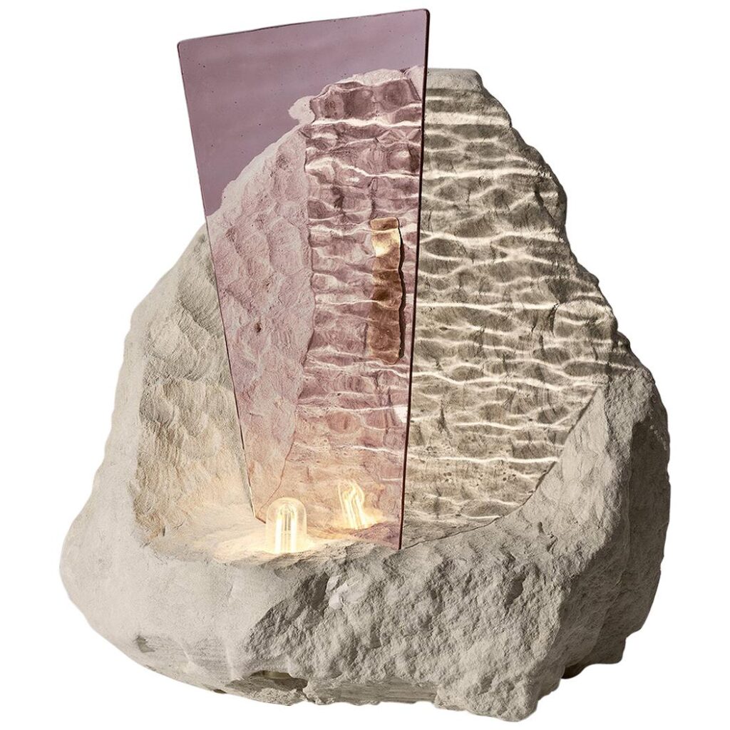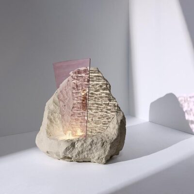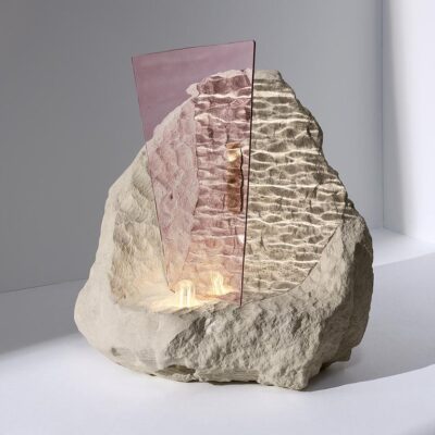 An ode to nature, this is what the two artists offer with their combined expertise and favorite materials, tufa stone and glass.