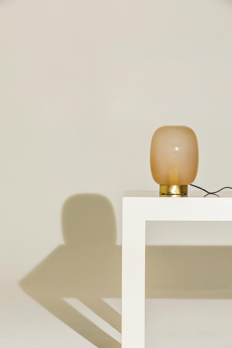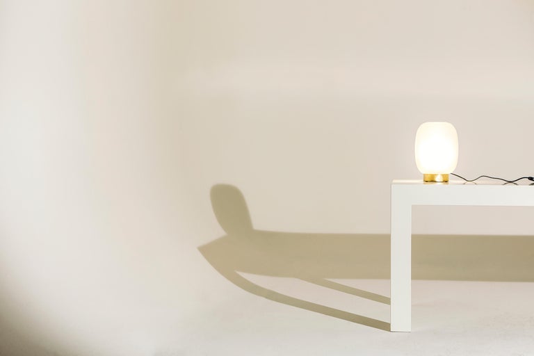 Available in different finish options: light satin burnished brass, medium satin burnished brass, and dark satin burnished brass. All our lamps can be wired according to each country. If sold to the USA it will be wired for the USA for instance. Dimensions may vary. Please contact us.