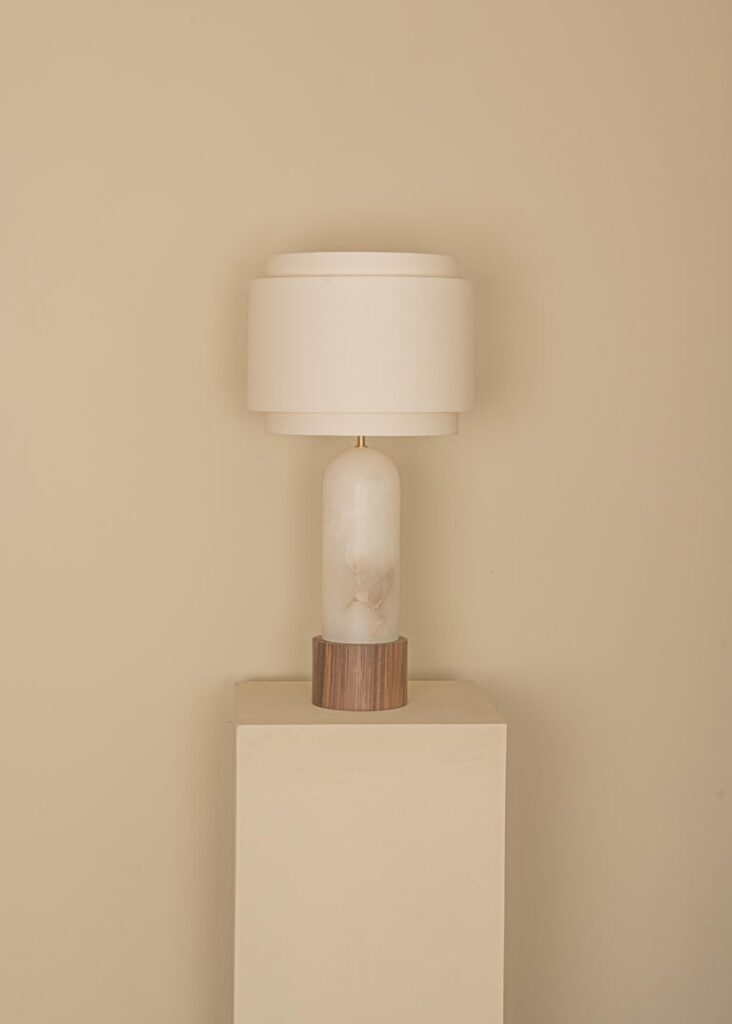 Materials: Brass, Cotton, Walnut and White Alabaster.