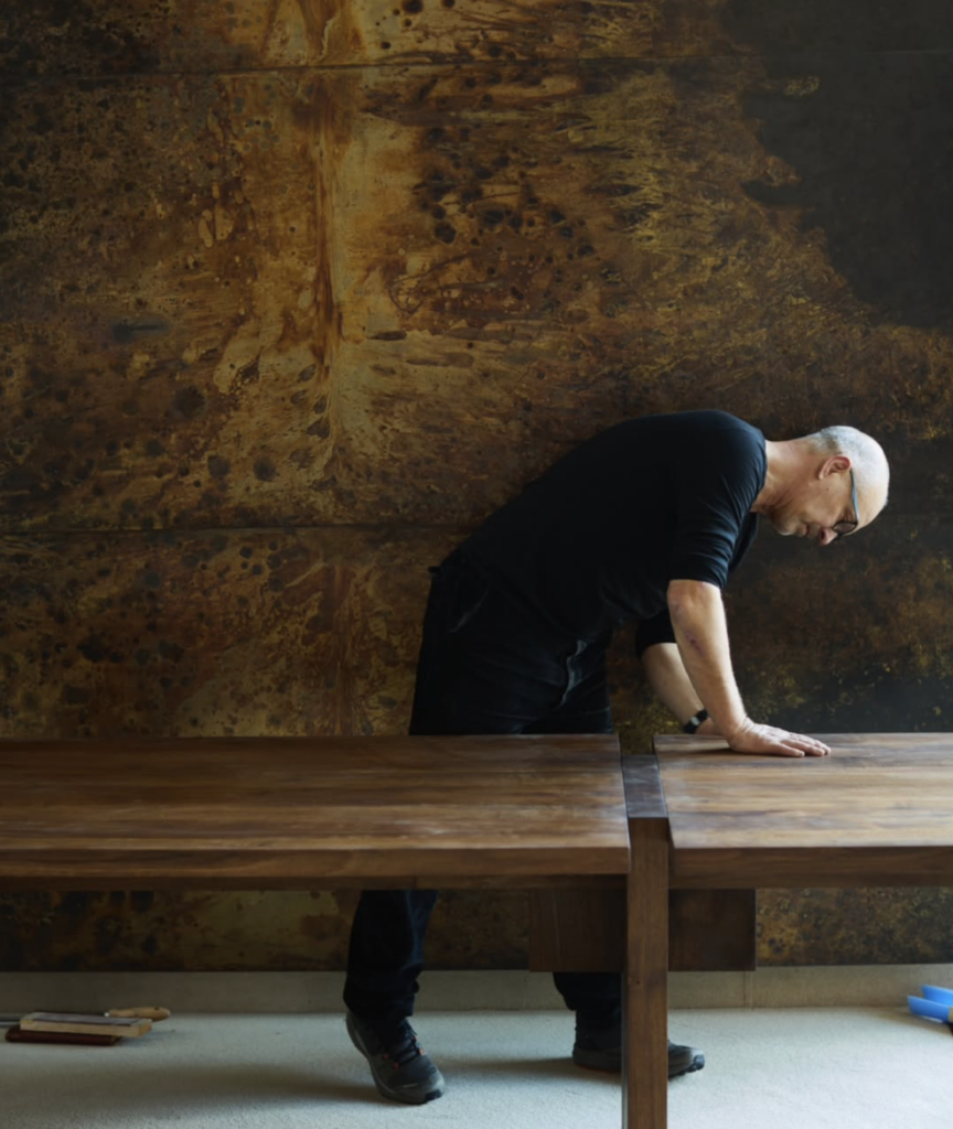 Working exclusively with salvaged solid woods such as pear and walnut, Meylaerts produces post-industrial furniture that honors the living character of materials while addressing today’s ecological and social conditions. Previously Director of Production at Lafayette Anticipations, he now devotes himself fully to his independent practice, offering pieces that are at once functional, reflective, and deeply rooted in process.