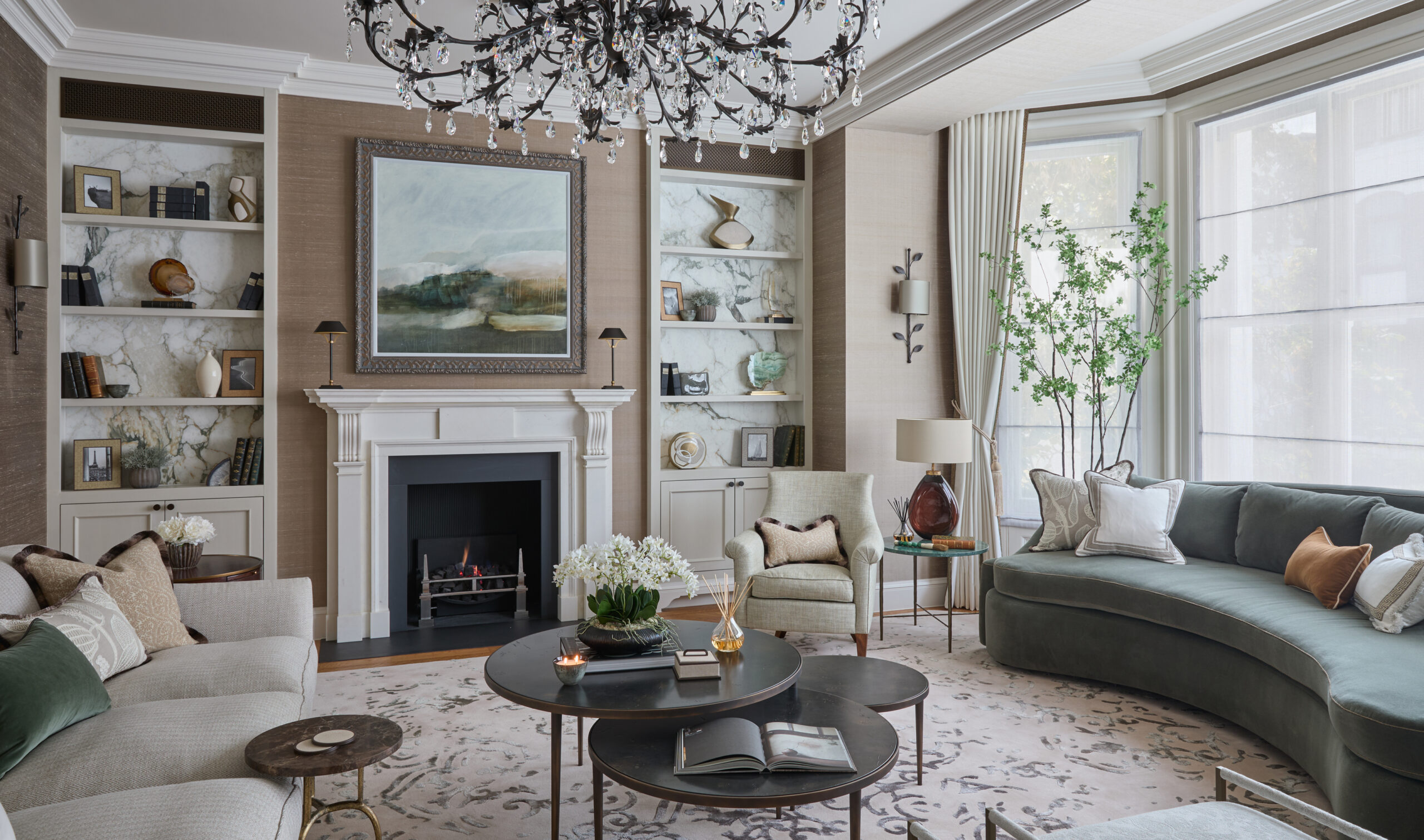 For my own home, I followed the same ethos, creating an elegant yet comfortable feel that the whole family enjoys. Drawing inspiration from classic Georgian architecture, including clean lines, lots of natural light, and natural materials like wood, marble, and silks where possible, I wanted there to be moments of visual drama, as well as quieter, more intimate spaces that can be closed off and feel private. I try not to be swayed by trends, as these almost always guarantee to make homes feel dated quickly. Instead, I choose long-lasting pieces and styles that I know will last a lifetime.